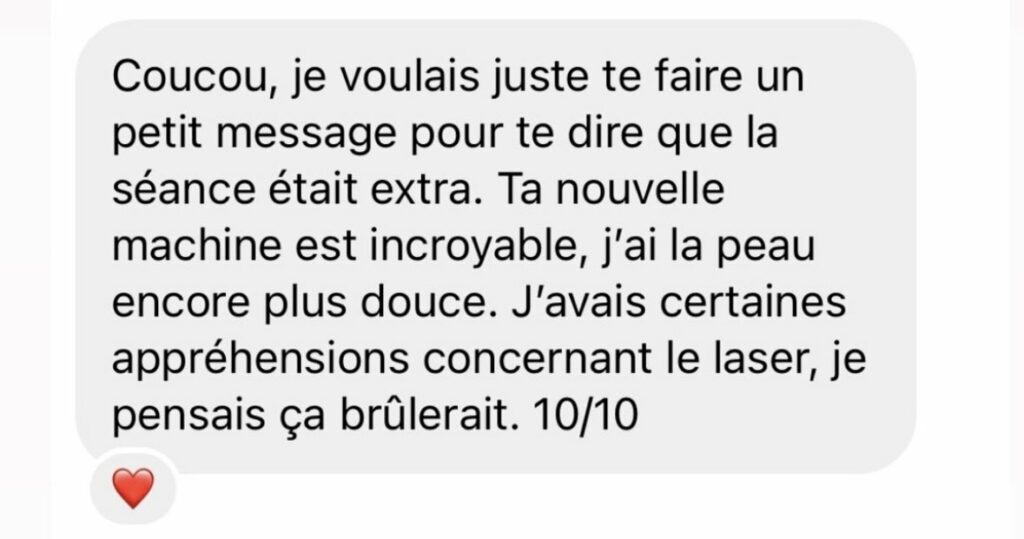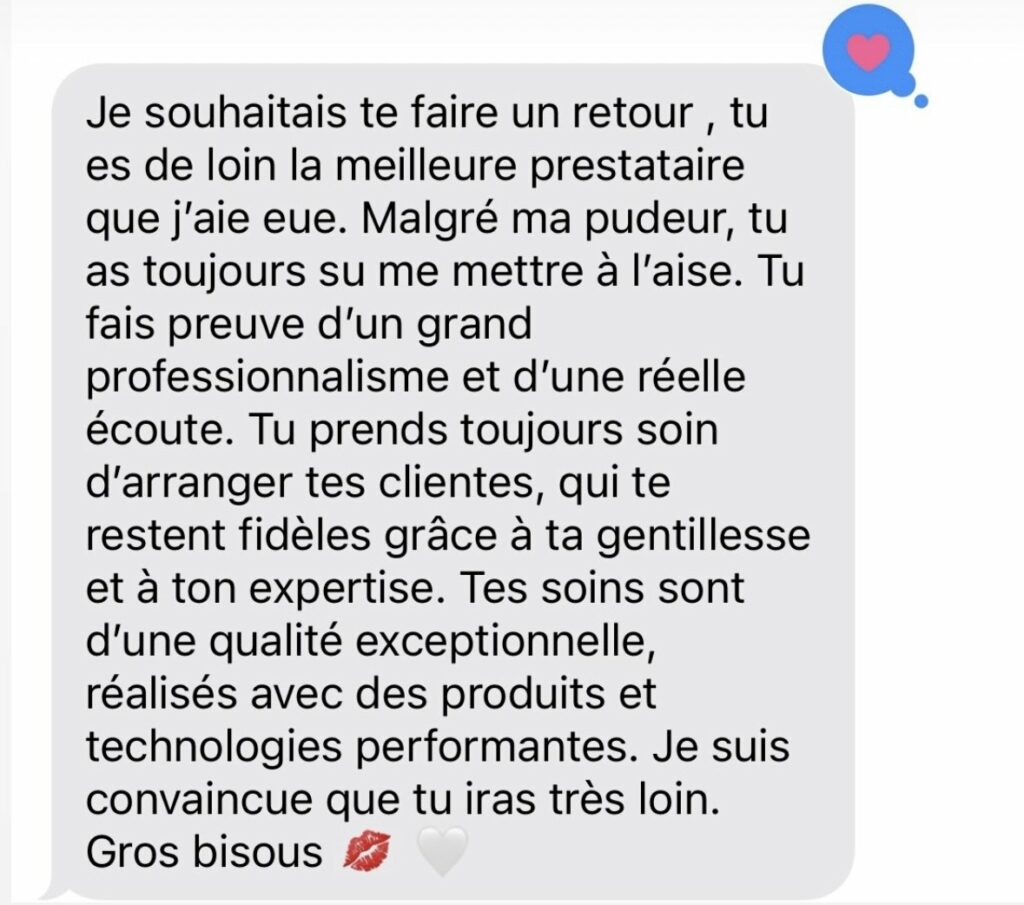 Chaque soin que je propose est conçu pour s’adapter parfaitement à votre type de peau. Vous bénéficiez de mon expertise et de ma passion pour l’esthétique, avec l’appui de technologies de dernière génération pour des résultats visibles et durables. Je vous reçois dans un espace intimiste et chaleureux, où chaque rendez-vous devient un moment privilégié de bien-être et de confiance.