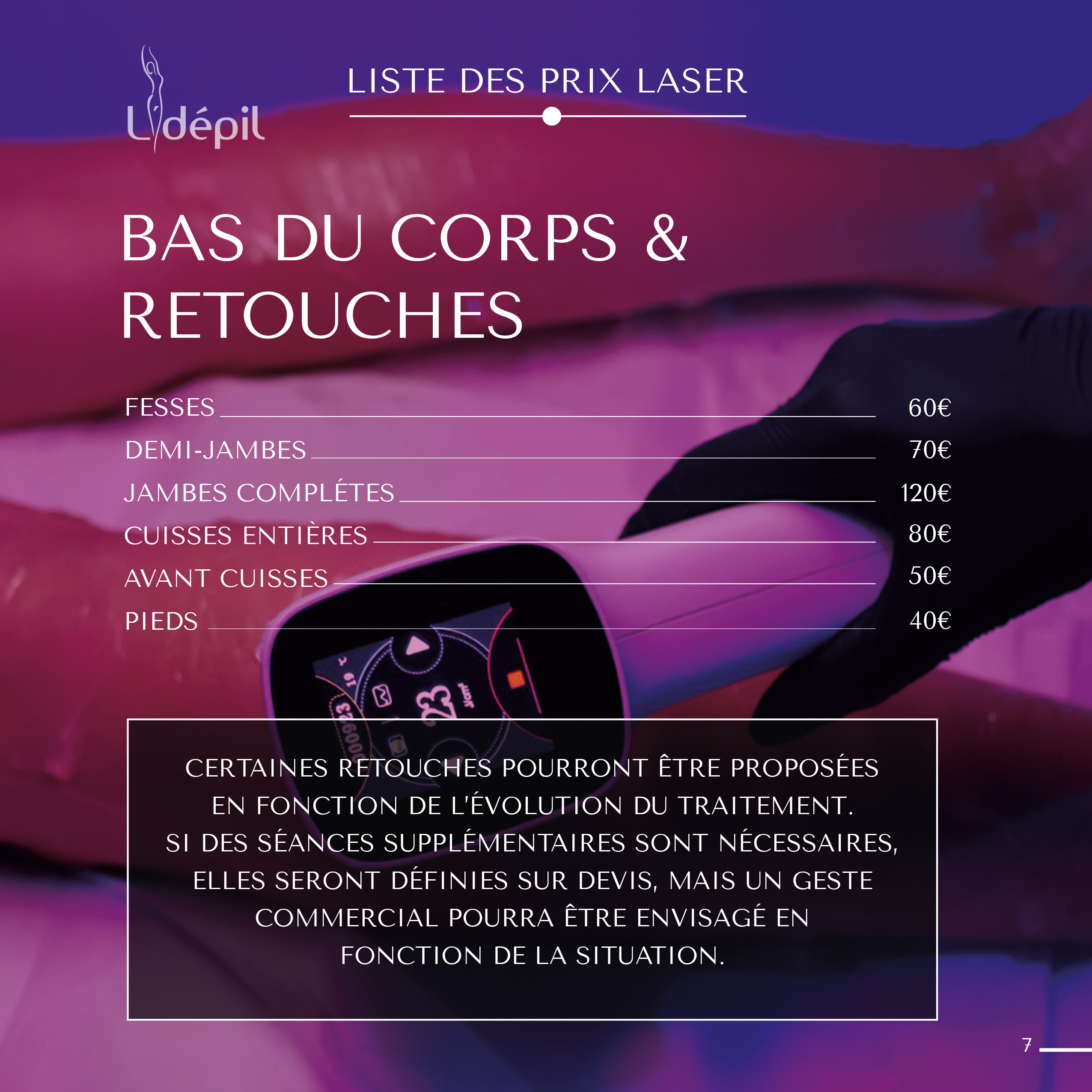 Chaque soin que je propose est pensé pour sublimer votre peau et révéler votre beauté naturelle. Je vous offre des prestations haut de gamme, adaptées à tous les types de peaux, avec des tarifs clairs et des résultats visibles.